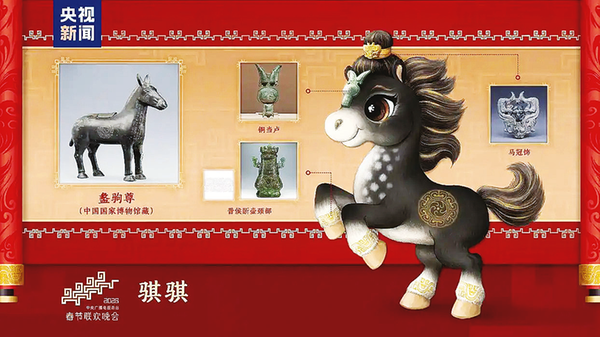 12月18日,中央廣播電視總臺發(fā)布《2026年春節(jié)聯(lián)歡晚會》吉祥物形象——四匹分別名為“騏騏”“驥驥”“馳馳”“騁騁”的駿馬,其中“騏騏”設(shè)計靈感源于寶雞出土的西周青銅器盠(lí)駒尊,這是繼2024年何尊、2025年銀質(zhì)鎏金如意后,寶雞出土文物再次融入央視春晚吉祥物形象設(shè)計。