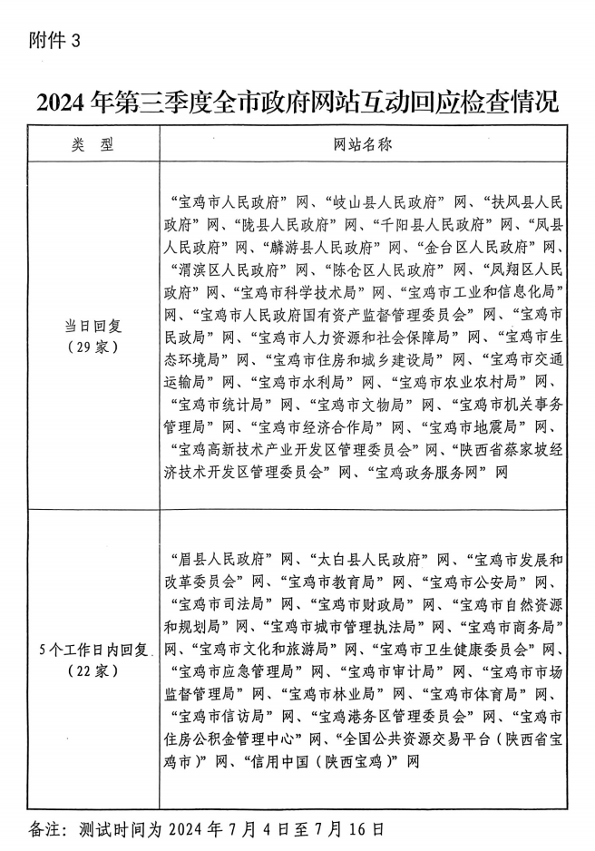 ? ? ? ? ? 3.2024年第三季度全市政府網(wǎng)站互動回應(yīng)檢查情況