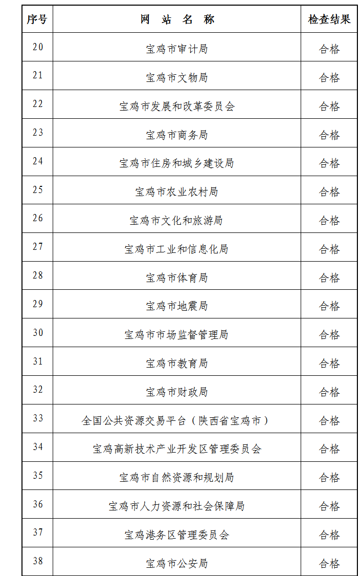 (二)個別網(wǎng)站欄目更新不及時。如:“寶雞市教育局”網(wǎng)、“寶雞市文化和旅游局”網(wǎng)、“寶雞高新技術(shù)產(chǎn)業(yè)開發(fā)區(qū)”網(wǎng)、“寶雞港務(wù)區(qū)管理委員會”網(wǎng)等網(wǎng)站新聞動態(tài)類欄目在本季度監(jiān)測時間點(diǎn)前2周內(nèi)未更新。
