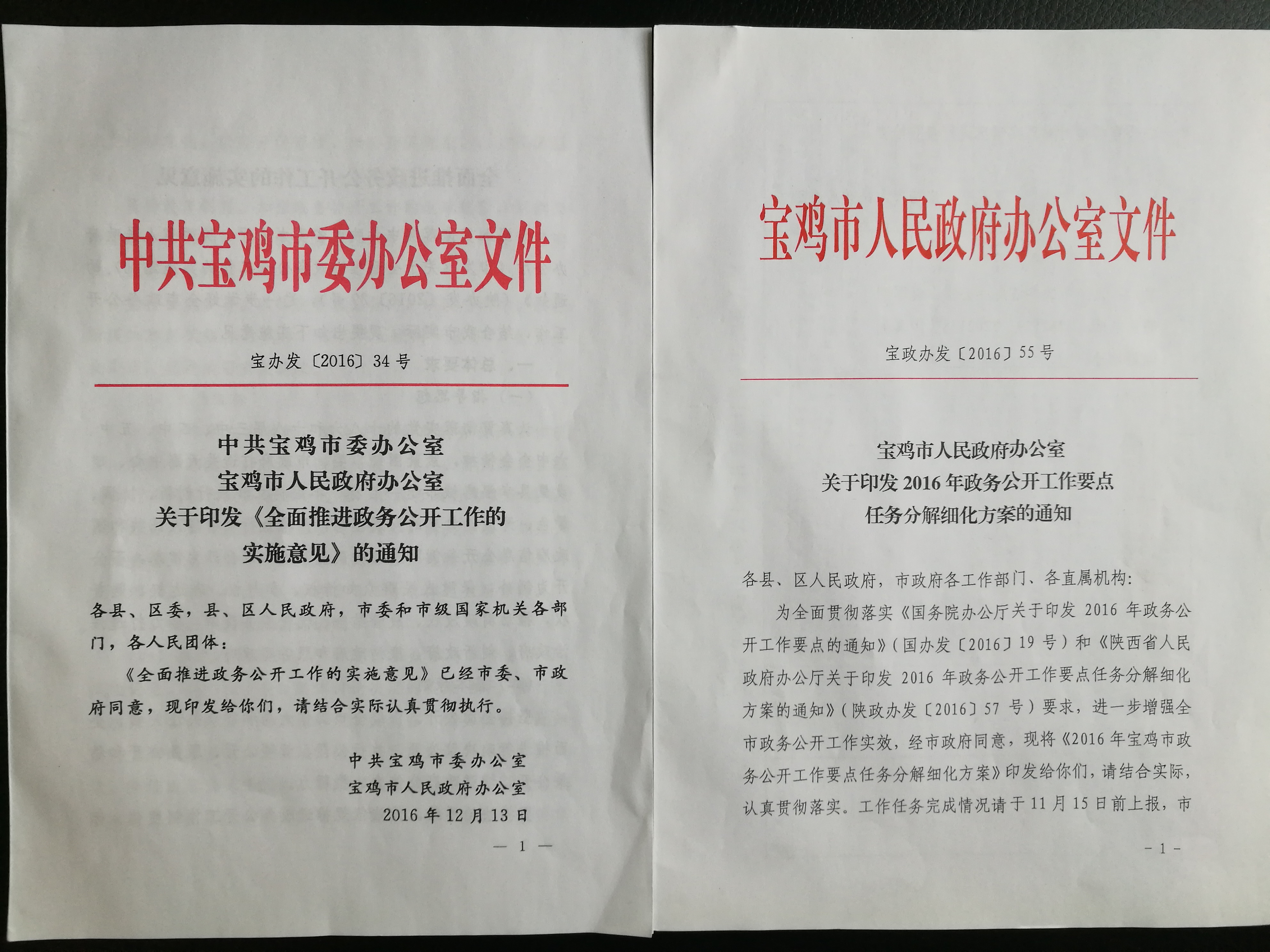 2016年,我市政府信息公開(kāi)和政務(wù)公開(kāi)工作以深入貫徹落實(shí)《條例》、陜西省《全面推進(jìn)政務(wù)公開(kāi)工作的實(shí)施意見(jiàn)》(陜辦發(fā)〔2016〕29號(hào))及《2016年政務(wù)公開(kāi)工作要點(diǎn)任務(wù)分解細(xì)化方案》(陜政辦發(fā)〔2016〕57號(hào))為綱領(lǐng),全面部署,多點(diǎn)謀劃,深入推進(jìn)決策、執(zhí)行、管理、服務(wù)、結(jié)果公開(kāi)和重點(diǎn)領(lǐng)域信息公開(kāi),全年累計(jì)公開(kāi)各類(lèi)政府信息14萬(wàn)余條,有效保障了人民群眾的知情權(quán)、參與權(quán)、表達(dá)權(quán)和監(jiān)督權(quán)。一是強(qiáng)化頂層設(shè)計(jì)。在充分調(diào)研和征求意見(jiàn)的基礎(chǔ)上,結(jié)合實(shí)際制定了寶雞市《全面推進(jìn)政務(wù)公開(kāi)工作的實(shí)施意見(jiàn)》(寶辦發(fā)〔2016〕34號(hào))和《2016年政務(wù)公開(kāi)工作要點(diǎn)任務(wù)分解細(xì)化方案》(寶政辦發(fā)〔2016〕55號(hào)),將年度政務(wù)公開(kāi)各項(xiàng)任務(wù)細(xì)化為6大項(xiàng)27小項(xiàng),明確了責(zé)任單位,提出了任務(wù)要求,有效推動(dòng)了工作落實(shí)。二是注重學(xué)習(xí)培訓(xùn)。堅(jiān)持向高標(biāo)準(zhǔn)看齊,9月,我市組織政務(wù)公開(kāi)工作專(zhuān)職機(jī)構(gòu)工作人員赴渭南、銅川等兄弟城市就政務(wù)公開(kāi)平臺(tái)建設(shè)、制度建設(shè)、管理模式和典型經(jīng)驗(yàn)進(jìn)行考察學(xué)習(xí),加強(qiáng)橫向交流,幫助工作人員拓展了視野,開(kāi)闊了思路。堅(jiān)持“互聯(lián)網(wǎng)+”的理念,將政務(wù)公開(kāi)同信息化建設(shè)協(xié)同推進(jìn),以信息化發(fā)展促公開(kāi)能力提升。11月,市政務(wù)信息辦公室和市政府信息化辦公室聯(lián)合舉辦了全市政務(wù)公開(kāi)暨信息化建設(shè)工作培訓(xùn)會(huì),邀請(qǐng)省電子政務(wù)辦公室、省網(wǎng)絡(luò)與信息安全測(cè)評(píng)中心、咸陽(yáng)絲路智慧城市研究院專(zhuān)家圍繞政務(wù)公開(kāi)、政府網(wǎng)站建設(shè)、智慧城市建設(shè)三個(gè)方面,對(duì)各縣區(qū)、各部門(mén)辦公室主任、政務(wù)公開(kāi)工作機(jī)構(gòu)負(fù)責(zé)人、政府網(wǎng)站負(fù)責(zé)人等共170余人進(jìn)行了系統(tǒng)培訓(xùn),幫助從業(yè)人員找準(zhǔn)問(wèn)題、理清思路、掌握方法,為更好開(kāi)展工作奠定基礎(chǔ)。三是加強(qiáng)考核監(jiān)管。市委、市政府高度重視政務(wù)公開(kāi)工作,2016年起將政務(wù)公開(kāi)工作納入全市目標(biāo)責(zé)任考核,并在全省地市層面率先開(kāi)展政務(wù)公開(kāi)第三方評(píng)估,市政務(wù)信息辦委托省社會(huì)科學(xué)院對(duì)全市12個(gè)縣區(qū)、65個(gè)市級(jí)部門(mén)(單位)政務(wù)公開(kāi)工作進(jìn)行獨(dú)立公正的測(cè)評(píng),建立起推動(dòng)政務(wù)公開(kāi)深入開(kāi)展的長(zhǎng)效機(jī)制。