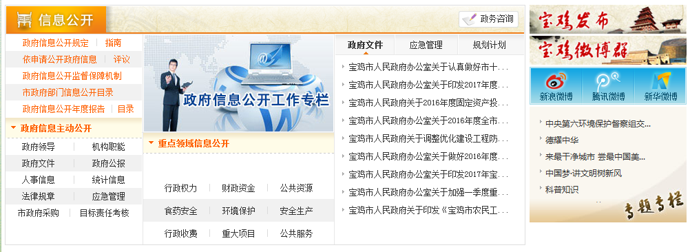 3.圍繞民生改善推進(jìn)公開(kāi)。市級(jí)民生領(lǐng)域各部門(mén)按照職責(zé)分工,大力推進(jìn)精準(zhǔn)脫貧、社會(huì)救助、就業(yè)創(chuàng)業(yè)、棚戶(hù)區(qū)和農(nóng)村危房改造、環(huán)境保護(hù)、教育、科技、衛(wèi)生、食品藥品安全、戶(hù)籍政策等信息公開(kāi)。市扶貧辦在全省率先建立脫貧攻堅(jiān)信息管理平臺(tái),集“庫(kù)”、“管”、“算”三大功能于一體,做到貧困戶(hù)基本情況、致貧原因、幫扶責(zé)任、脫貧路徑、脫貧效果和脫貧時(shí)間“一表清”。目前,平臺(tái)已錄入相關(guān)數(shù)據(jù)812萬(wàn)條,采集圖像信息9.4萬(wàn)張,形成全市貧困人口基本數(shù)據(jù)庫(kù)、脫貧攻堅(jiān)基礎(chǔ)資料庫(kù)等,通過(guò)平臺(tái)實(shí)現(xiàn)了上下互動(dòng)、精準(zhǔn)管理,相關(guān)部門(mén)還可以通過(guò)平臺(tái)進(jìn)行多角度大數(shù)據(jù)分析計(jì)算,為市委、市政府精準(zhǔn)脫貧工作決策提供科學(xué)依據(jù)。開(kāi)發(fā)了全市幫扶責(zé)任人手機(jī)APP客戶(hù)端,發(fā)布公開(kāi)各類(lèi)政策文件、扶貧日志信息等4萬(wàn)余條,通過(guò)各級(jí)新聞媒體報(bào)道我市脫貧攻堅(jiān)工作170多篇(次),營(yíng)造了濃厚的社會(huì)氛圍。市人社局加大了全市促進(jìn)就業(yè)創(chuàng)業(yè)政策、措施的公開(kāi)力度,在門(mén)戶(hù)網(wǎng)站開(kāi)設(shè)“就業(yè)創(chuàng)業(yè)”專(zhuān)欄,每周定期發(fā)布全市招聘信息,并開(kāi)發(fā)了就業(yè)創(chuàng)業(yè)培訓(xùn)網(wǎng)上報(bào)名系統(tǒng)。開(kāi)通“寶雞人社12333”微信,拓展手機(jī)端服務(wù)渠道,目前已實(shí)現(xiàn)信息發(fā)布、社會(huì)保障卡、社會(huì)保險(xiǎn)權(quán)益查詢(xún)、職工養(yǎng)老保險(xiǎn)和居民醫(yī)療保險(xiǎn)繳費(fèi)等28種公共服務(wù),方便群眾辦理。市科技局實(shí)施科技經(jīng)費(fèi)陽(yáng)光監(jiān)管,建立健全科研項(xiàng)目和資金管理信息公開(kāi)機(jī)制,按照“全程覆蓋、環(huán)節(jié)公開(kāi)”的基本要求,規(guī)范“三審一決策”的項(xiàng)目立項(xiàng)制度,切實(shí)抓好科研項(xiàng)目立項(xiàng)信息公開(kāi)、過(guò)程信息公開(kāi)和結(jié)題驗(yàn)收信息公開(kāi),將科技項(xiàng)目經(jīng)費(fèi)預(yù)算安排、項(xiàng)目申報(bào)受理情況、評(píng)審后擬立項(xiàng)項(xiàng)目名單、經(jīng)費(fèi)撥付情況等所有環(huán)節(jié)通過(guò)“陽(yáng)光工程”網(wǎng)站予以發(fā)布。