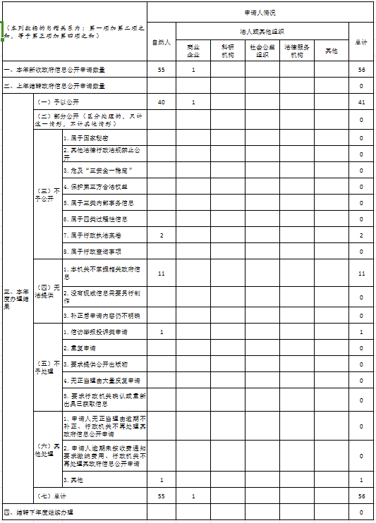 (二)依申請(qǐng)公開(kāi)情況。進(jìn)一步規(guī)范依申請(qǐng)公開(kāi)辦理流程,建立受理登記、辦結(jié)銷(xiāo)號(hào)工作臺(tái)賬,做好依申請(qǐng)公開(kāi)答復(fù)內(nèi)容審核等工作。全年共接收并辦結(jié)依申請(qǐng)公開(kāi)信件56件,其中,因鎮(zhèn)街政府信息公開(kāi)申請(qǐng)逾期答復(fù),引發(fā)行政復(fù)議2件。